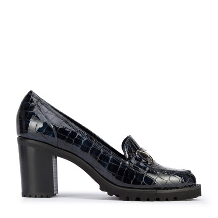 Te stylowe buty to świetny wybór dla miłośniczek klasyki w nowoczesnym wydaniu. Mają wysoki, ale stabilny obcas, więc dodadzą Ci kilku centymetrów wzrostu. Gumowa podeszwa zadba o komfortowe chodzenie przez wiele godzin. Czółenka zostały wykonane we Włoszech z wysokiej jakości lakierowanej skóry naturalnej. Zdobi je charakterystyczne dla mokasynów obszycie i elegancka metalowa klamra. Czółenka ze skóry lakierowanej na platformie z bieżnikiem to modny dodatek, który możesz nosić zarówno do pracy, jak i po pracy.