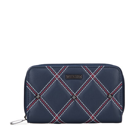 Dámska prešívaná peňaženka s nitmi a ozdobným prešívaním námornícka modrá 95-1Y-522-7