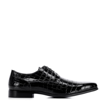 Męskie derby z lakierowanej skóry o fakturze croco czarne 96-M-519-1C Čítajte viac