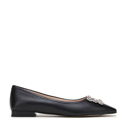 Baleriny skórzane z błyszczącą klamrą czarne 98-D-956-1