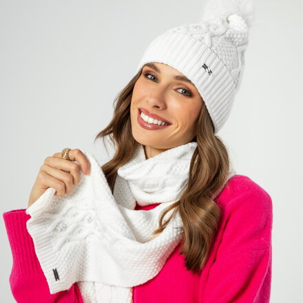- Estetyczne detale: Delikatne perełki to efektowny akcent, który dodaje kobiecości i elegancji. Miękki i puszysty pompon dodaje czapce lekkości i uroku, podkreślając zimowy charakter zestawu.