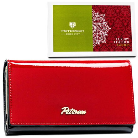 Módna dámska peňaženka z prírodnej kože v červenej a čiernej farbe, zapínaná na patentku - Peterson