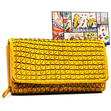 Horčicová peňaženka s geometrickým vzorom z prírodnej kože – Rovicky