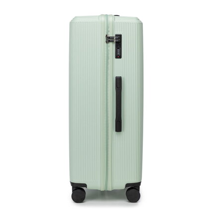 - Design: Pionowe żłobienia i eleganckie czarne detale podkreślają nowoczesny charakter walizki.
