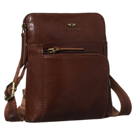 Brązowa, męska listonoszka ze skóry naturalnej zamykana suwakiem - Peterson